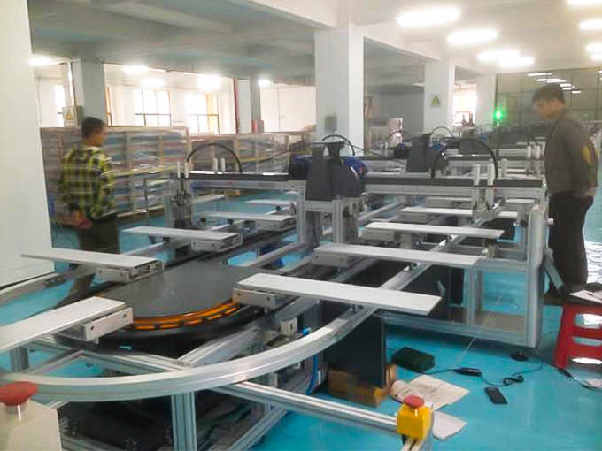 印花機可分為 8 色,12 色,24 色等等,顏色越多工位就越多,需要的電機和變頻器就越多,但應用起來也主要是分兩種應用,一個是主臺板的,一個是每個工位上的刷頭的,下面就逐一介紹一下。