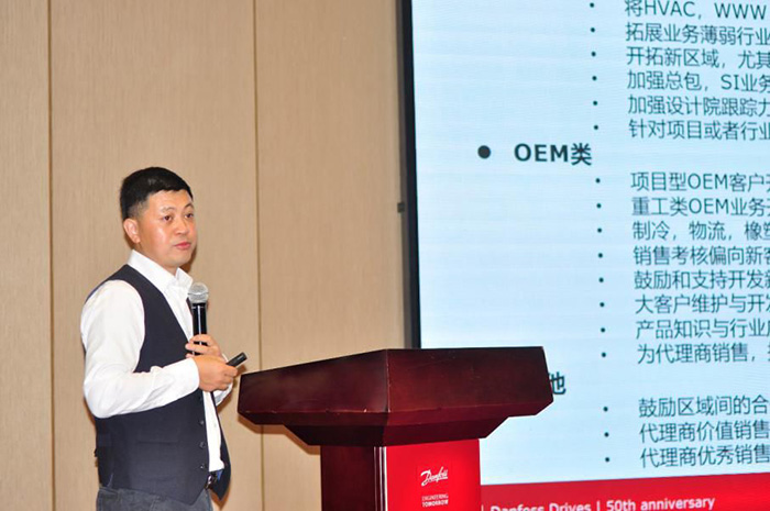 在12月14號(hào)上午的會(huì)議中,丹佛斯傳動(dòng)中國(guó)區(qū)副總裁盧中平首先登場(chǎng),為大家介紹了丹佛斯傳動(dòng)2018年的業(yè)務(wù)情況以及家鄉(xiāng)3.0戰(zhàn)略規(guī)劃。讓不少合作伙伴了解到了未來丹佛斯在中國(guó)區(qū)的戰(zhàn)略規(guī)劃。