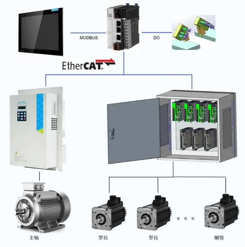 針對傳統設備無法生產高附加值品種的痛點,匯川全電方案采用EtherCAT總線方案,通訊速率相比CAN總線方案更快,羅拉速度實時可調,響應更快,能滿足超短竹節、段彩等特殊品種工藝要求。