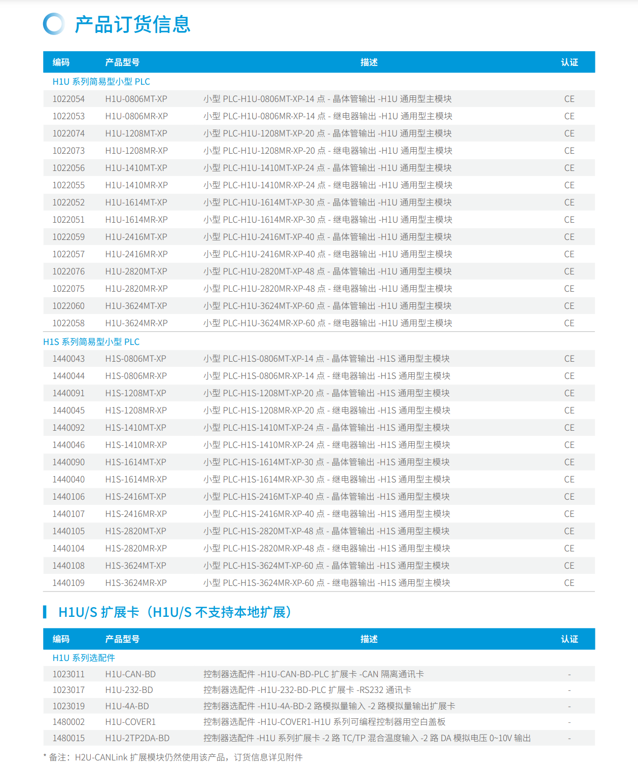 H1U系列PLC 隸屬匯川小型PLC 經濟型系列,其主要特點具備小體積,大程序容量,并具備3 軸高速100K 脈沖以便實現高精度定位。支持CANlink 擴展卡擴展H2u 系列的遠程擴展模塊來豐富IO。該系列PLC 點數覆蓋14~60 點。是小型自動化設備高性價比的選擇。