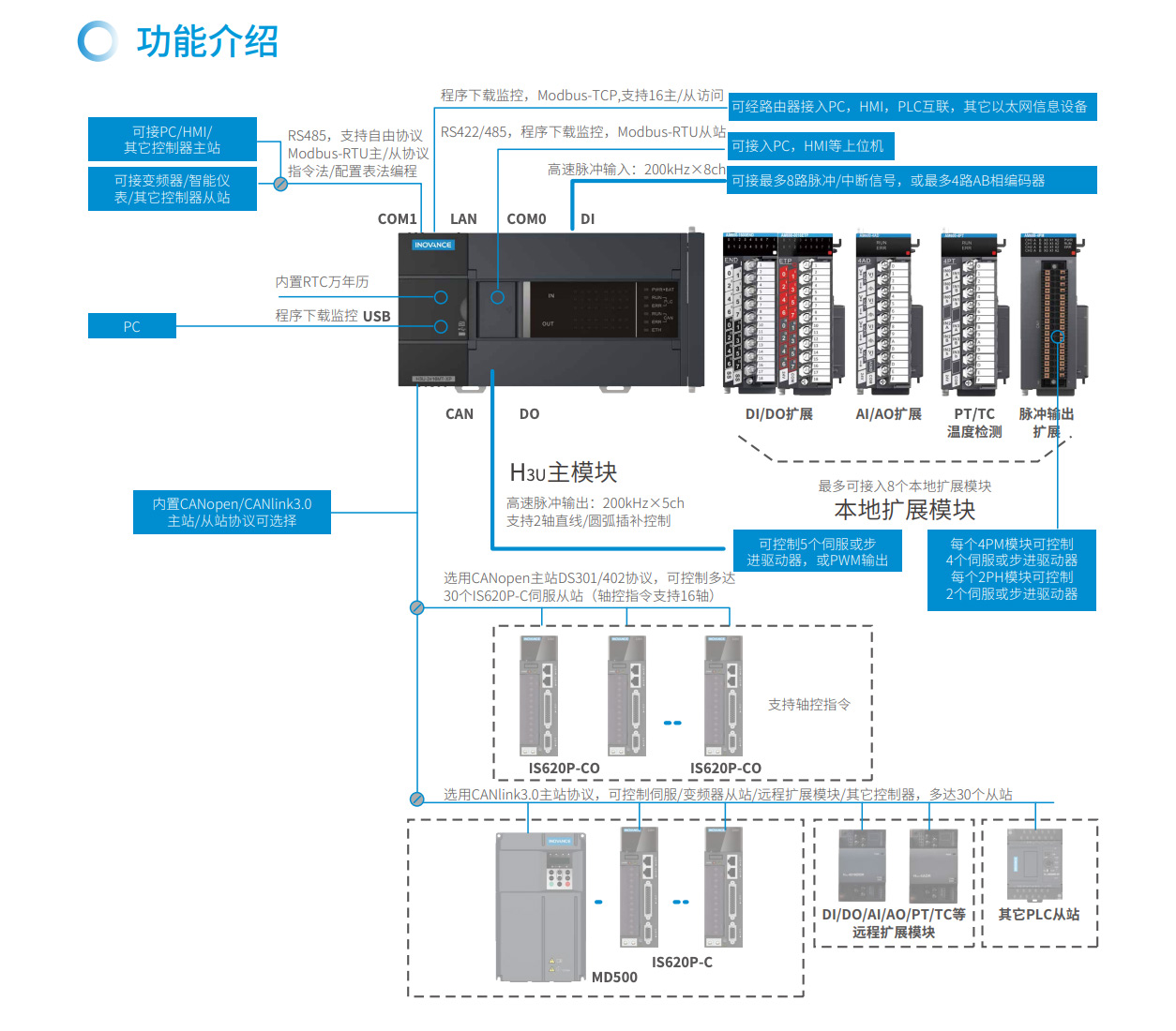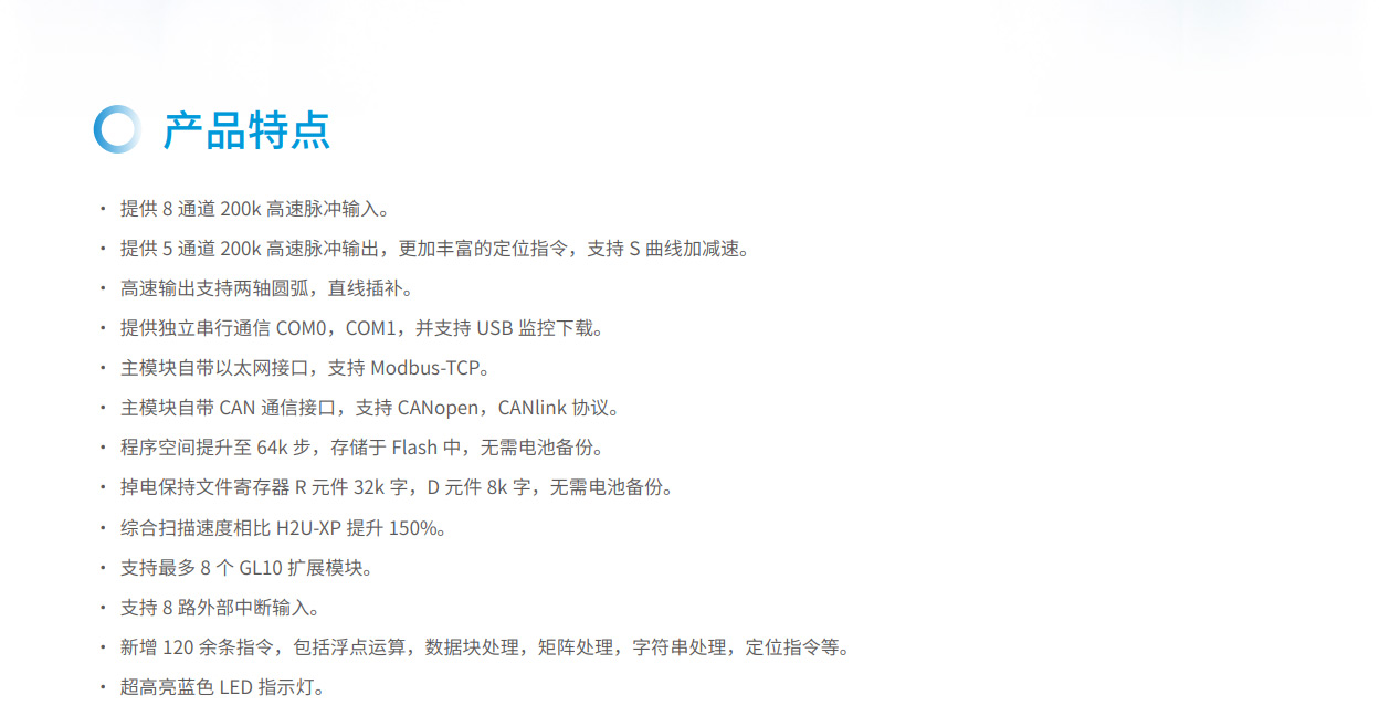 H3U系列PLC是匯川技術開發(fā)的第三代高性能小型PLC,采用新一代獨具匠心的PLC 架構技術,在增加更多豐富功能的情況下持續(xù)提升性能。配合完整且嚴格的軟件測試過程,使得PLC 穩(wěn)定可靠,值得信賴。